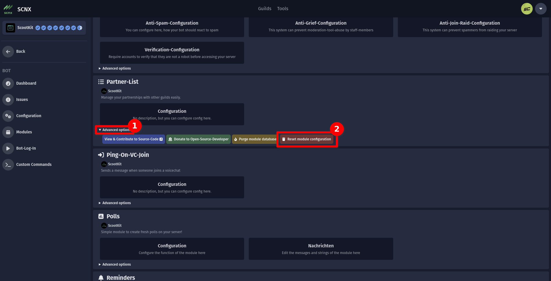 To reset your Module-Configuration, follow these instructions: